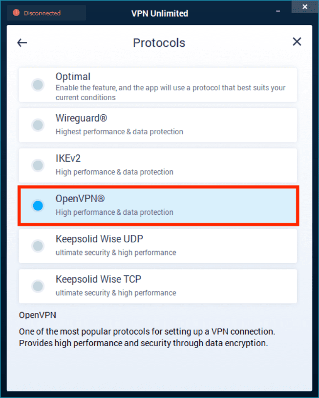 - حدد بروتوكول OpenVPN وارجع إلى الشاشة الرئيسية.