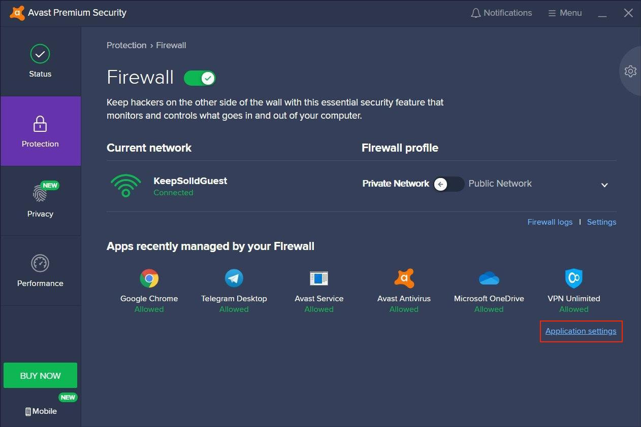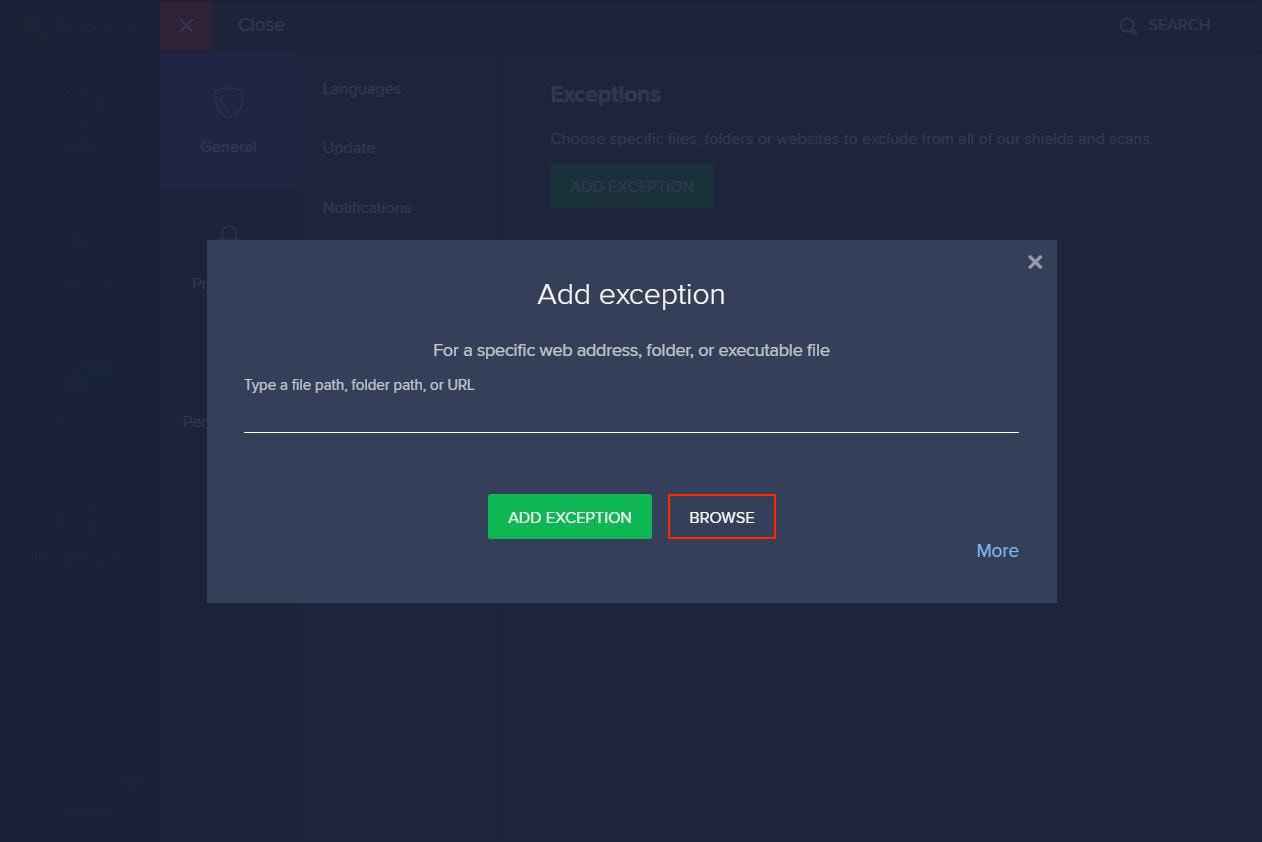 Vous devrez ajouter VPN Unlimited aux exclusions à la fois dans les paramètres généraux et dans les paramètres d'Avast Firewall. Tout d'abord, voyons comment procéder dans les paramètres Généraux: