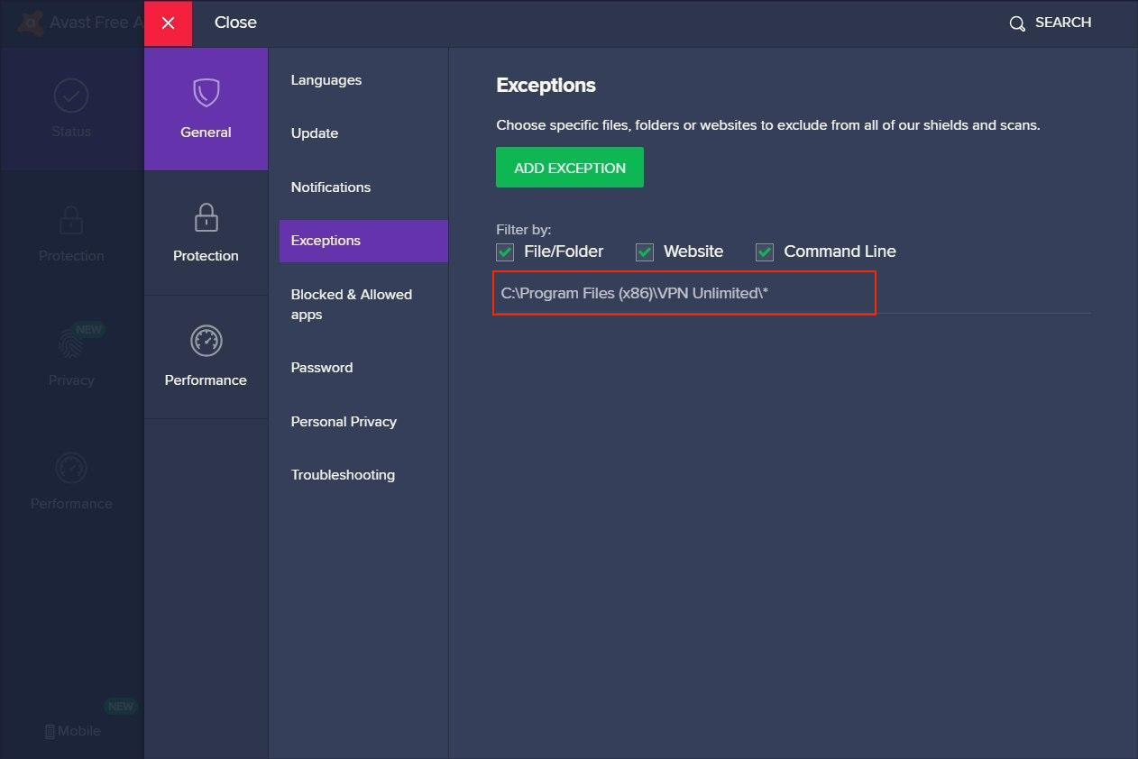 Comment ajouter VPN Unlimited aux exclusions Avast
