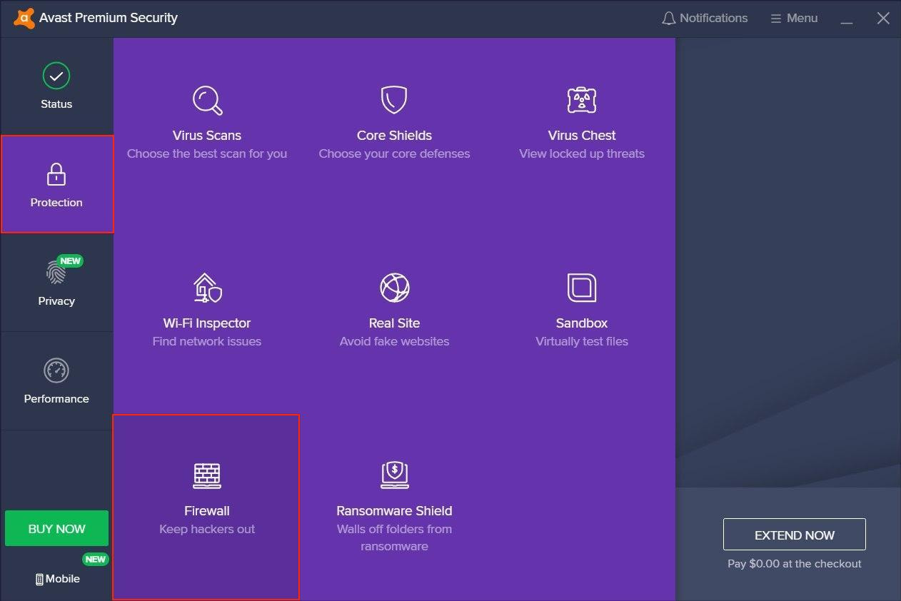 Une fois terminé, passez aux paramètres d'Avast Firewall:
