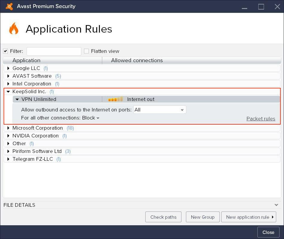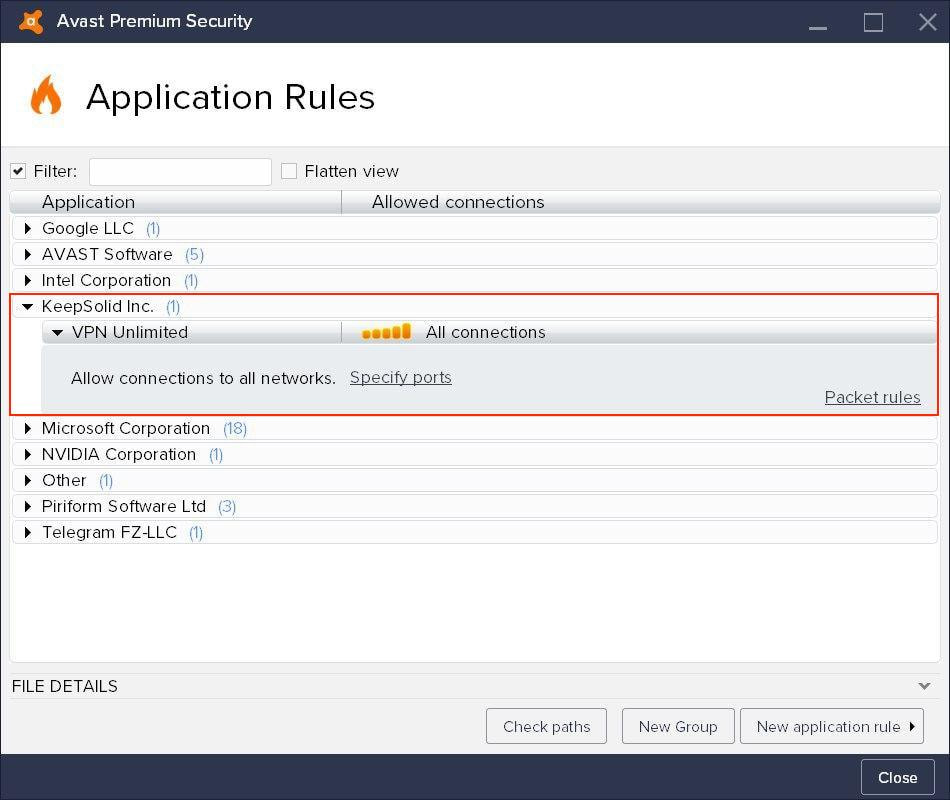 C'est ça. Vous avez réussi à ajouter VPN Unlimited à la liste blanche dans vos paramètres Avast Antivirus.