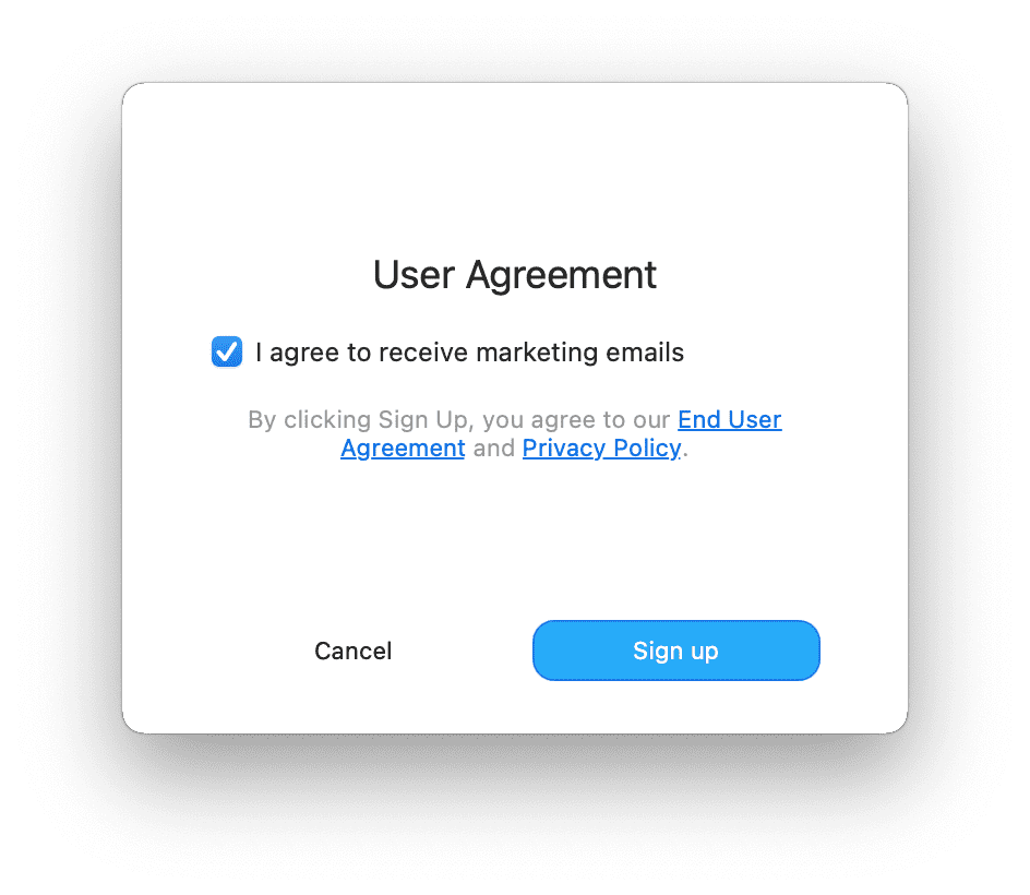 2. Se você é um novo cliente de KeepSolid, verá o seguinte pop-up. Clique em Sign up (Cadastre-se) para prosseguir.