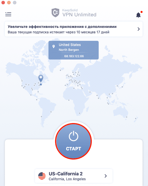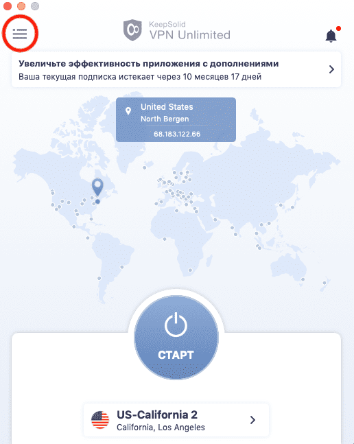 Другой способ использовать WireGuard® на Mac – загрузить VPN Unlimited и установить соединение WireGuard® VPN через приложение:
