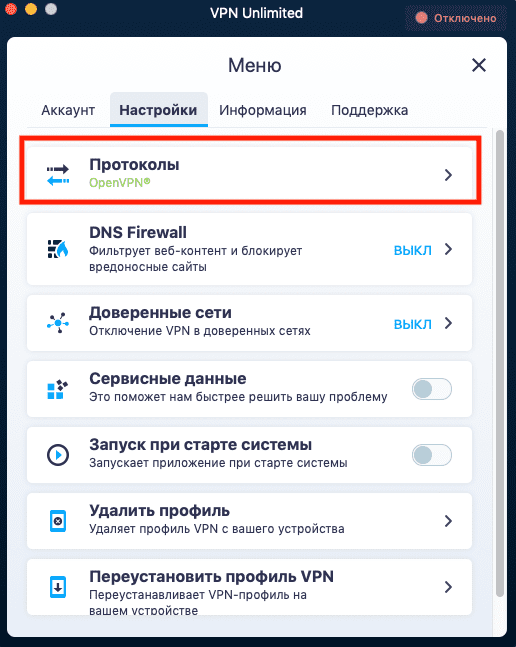 Загрузите VPN Unlimited, активируйте WireGuard в настройках и наслаждайтесь максимальной безопасностью на своем Mac и других устройствах.